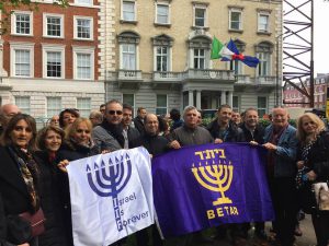 Nos délégués d’Israel Is Forever se sont rendus accompagnés de représentants du Betar et de l’Organisation Sioniste Mondiale devant le Bureau de Lord Balfour pour commémorer le centenaire de la Déclaration Balfour octroyant un foyer national juif en Eretz Israel sur les deux rives du Jourdain. 30 années après cette Déclaration, l’Etat d’Israël déclarait son indépendance.