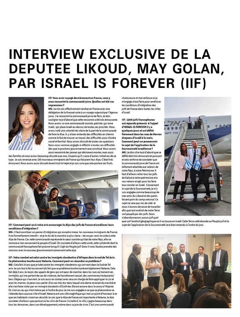 INTERVIEW EXCLUSIVE DE LA DEPUTEE LIKOUD, MAY GOLAN, PAR ISRAEL IS FOREVER